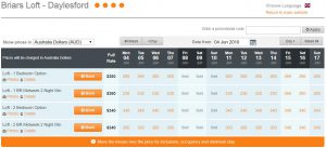 Then choose the date you’d like to stay and the option you need i.e. 1 bedroom or 2 bedrooms. Please note that both the Cottage and Loft are a fully self-contained cottages, so if you only need one bedroom, then the second bedroom and bathroom will be locked, and we won’t charge you for that room.